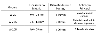 Modelo Espessura do Material Diâmetro Interno Mínimo Aplicação.